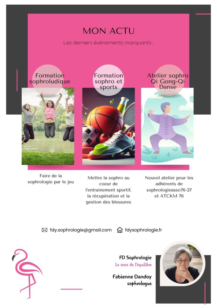 Sophrologie Asso 76-27 : Une nouvelle collaboration avec des séances de groupe le lundi après-midi de 14h30 à 15h30, maison de quartier BINET à ROUEN. Pour tous renseignements, merci de vous adresser à Sophrologie Asso 76-27.